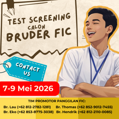 Kami mengundang Anda para pemuda yang merasa diri terpanggil untuk membaktikan hidup bagi Kerajaan Allah dengan melayani sesama melalui karya kongregasi kami. Jangan ragu untuk menghubungi Promotor Panggilan FIC melalui telefon atau akun media sosial kami. Jika Anda berada di sekitar komunitas Bruder FIC silakan datang dan menemui bruder di komunitas terdekat.