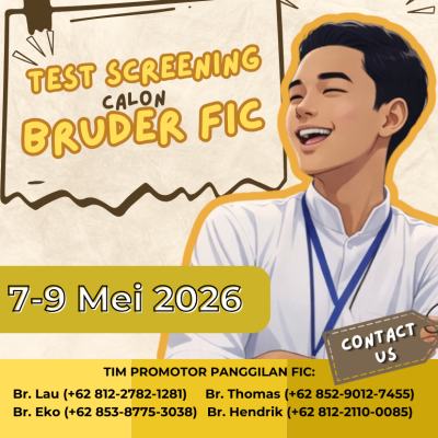 Kami mengundang Anda para pemuda yang merasa diri terpanggil untuk membaktikan hidup bagi Kerajaan Allah dengan melayani sesama melalui karya kongregasi kami. Jangan ragu untuk menghubungi Promotor Panggilan FIC melalui telefon atau akun media sosial kami. Jika Anda berada di sekitar komunitas Bruder FIC silakan datang dan menemui bruder di komunitas terdekat.